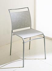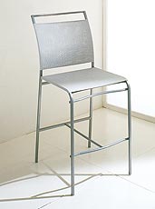 stool, polished stainless steel frame, seat and back in synthetic fabric