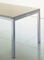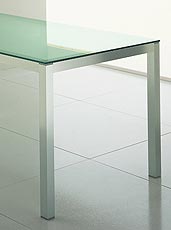 fixed table with glossy stainless aluminium frame, glass tabletop, 1x150x90 cm