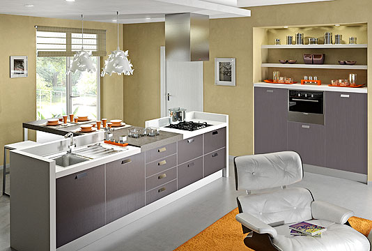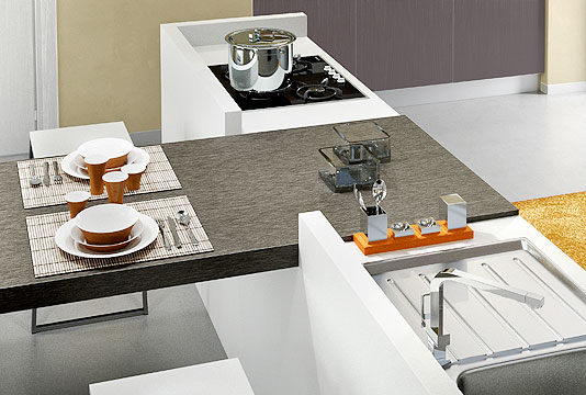 + grey + white laminate + pale grey larch-wood worktop