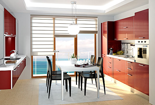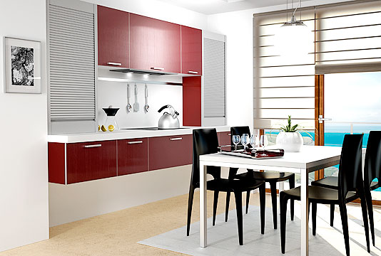+ burgundy + white laminate worktop
