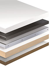 --> white grainy worktop with ABS cherry plywood border H. 4 cm