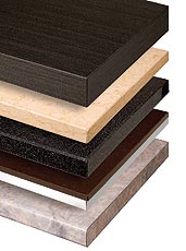 Laminated postformed table, fixed or extending, in the same finishes as the laminated postformed worktops