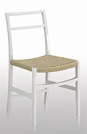 Malina chair Venice model, glossy white lacquered frame, straw seat