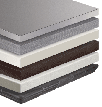 4/6 cm thick light grey larch-wood laminated worktop with light grey border