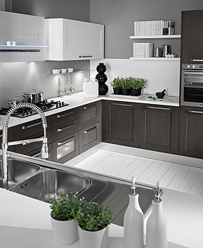 + grey-stainer oak-wood + matt white + white laminate top